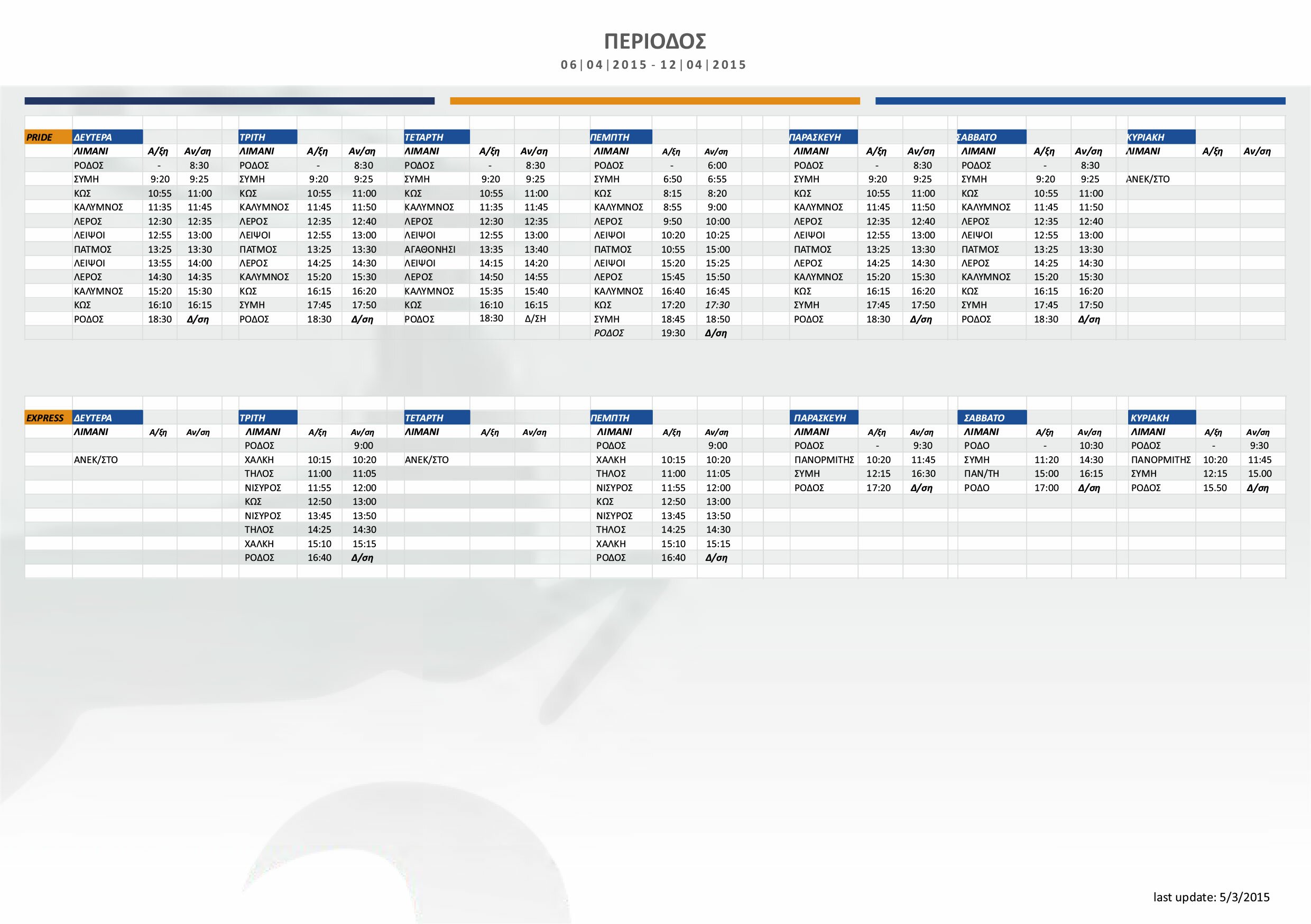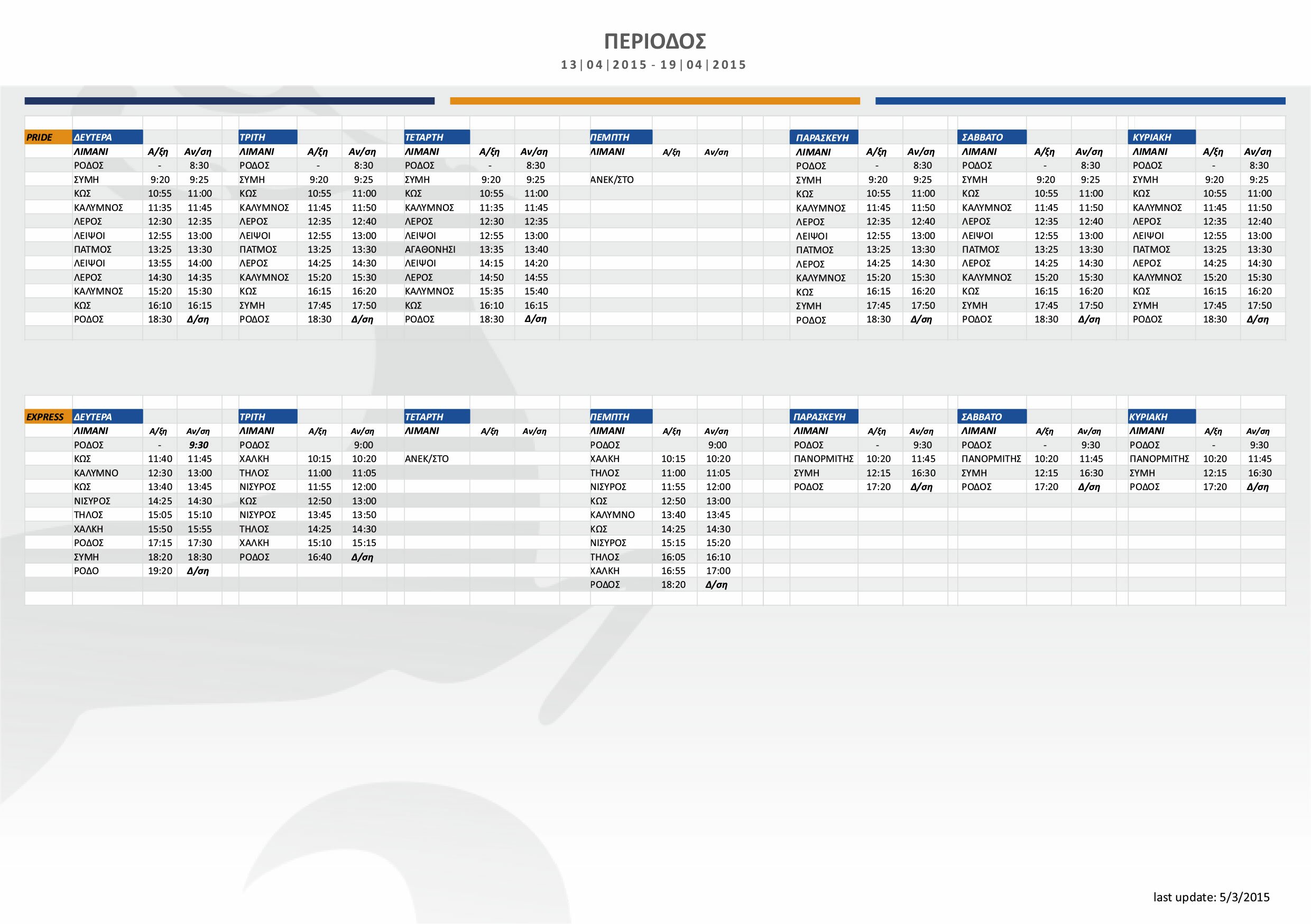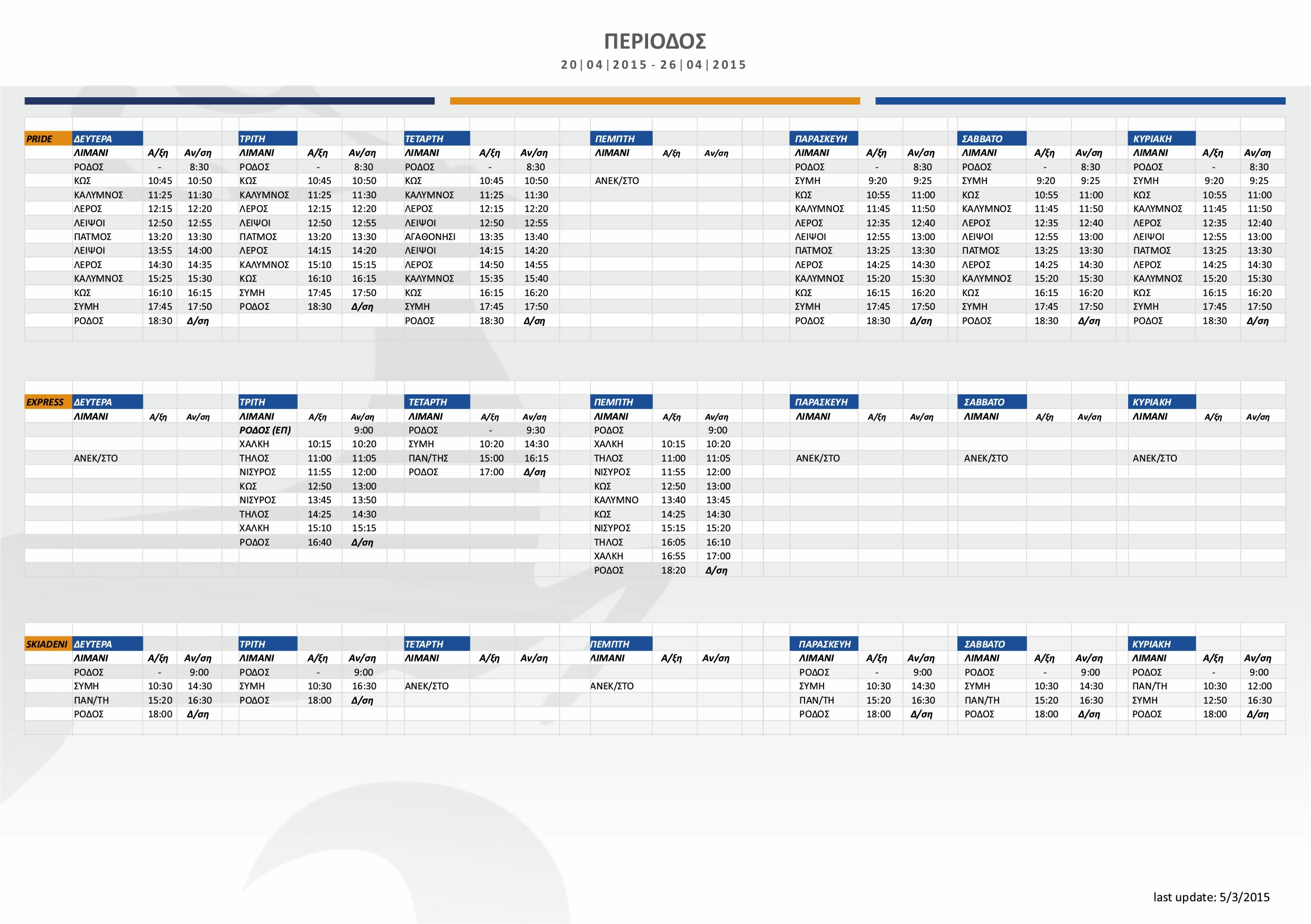Το σχέδιο δρομολογίων για την περίοδο απο 06/04/2015 εώς 31/10/2015