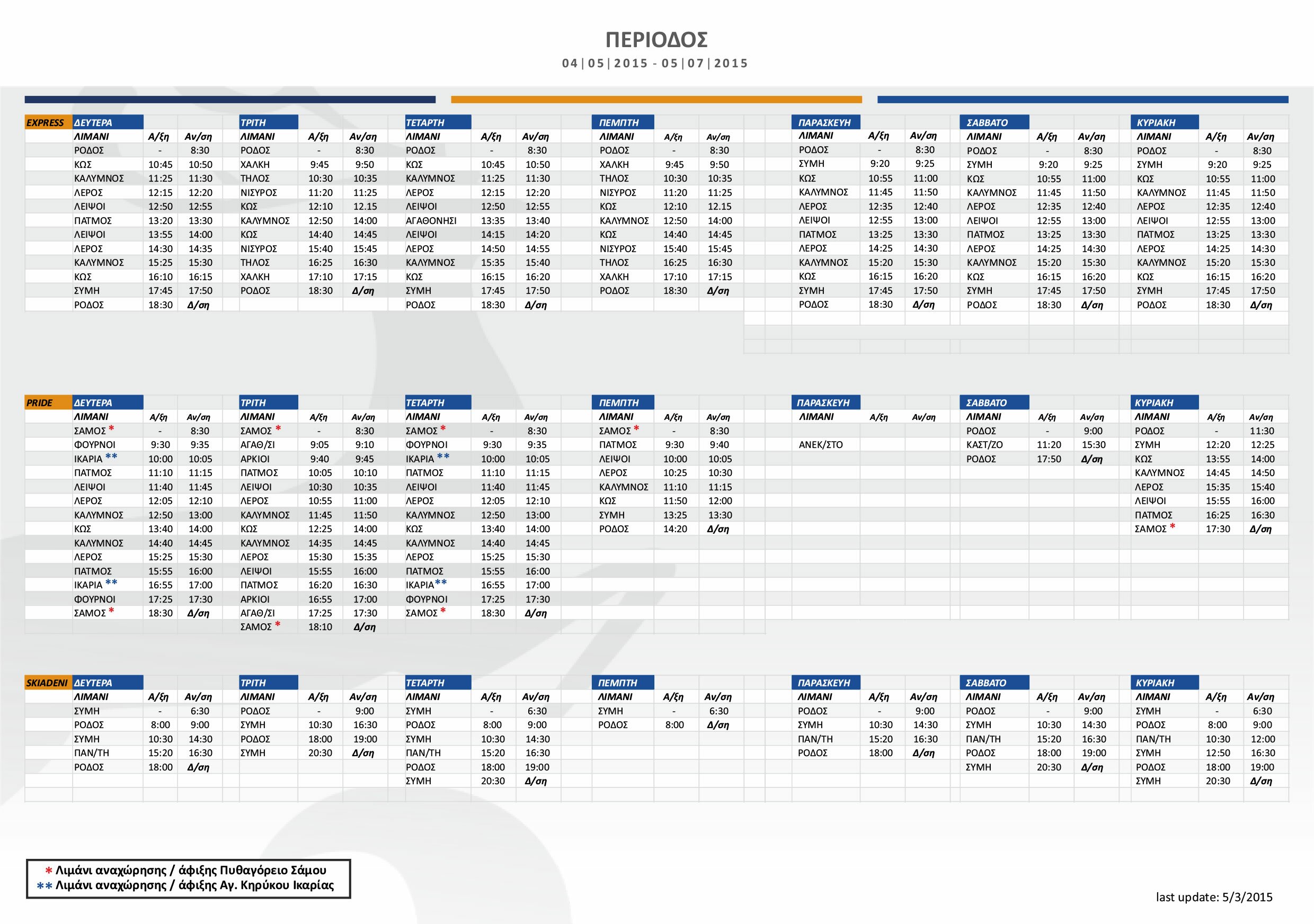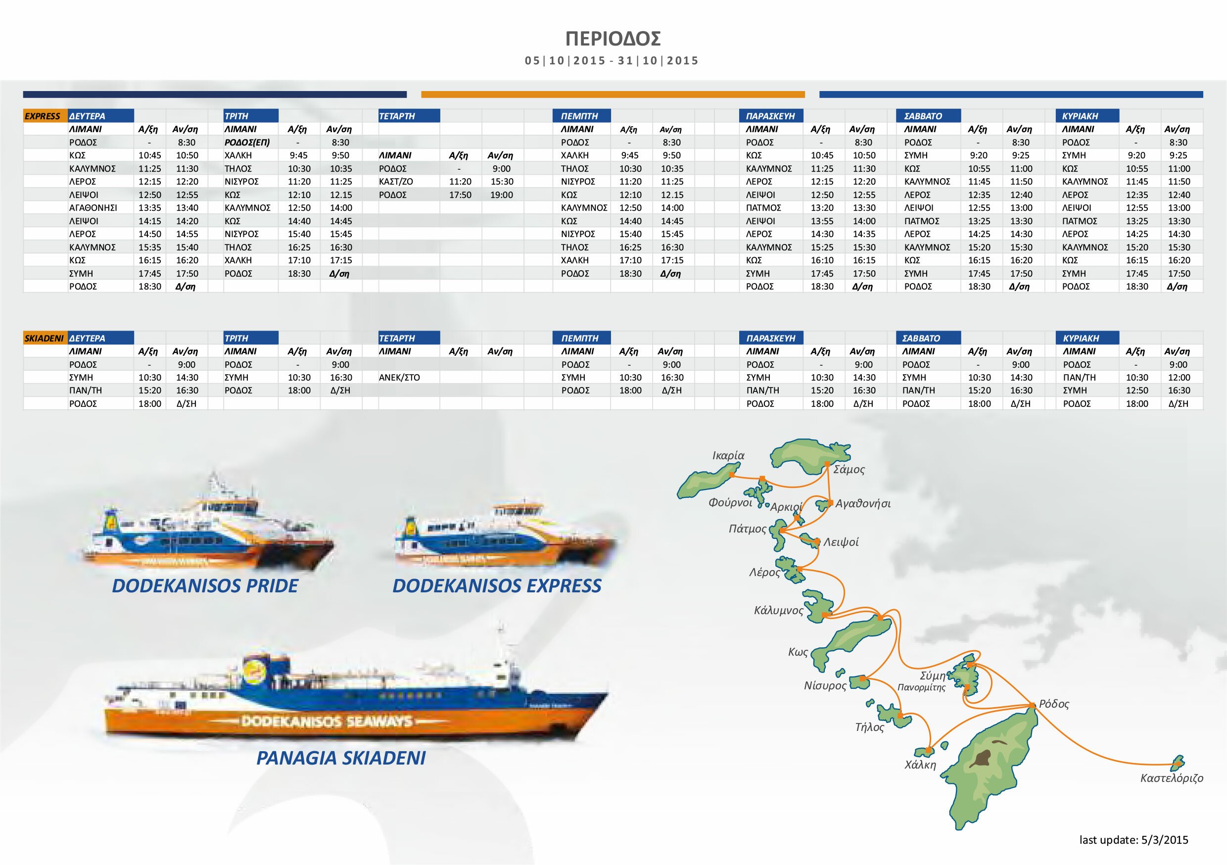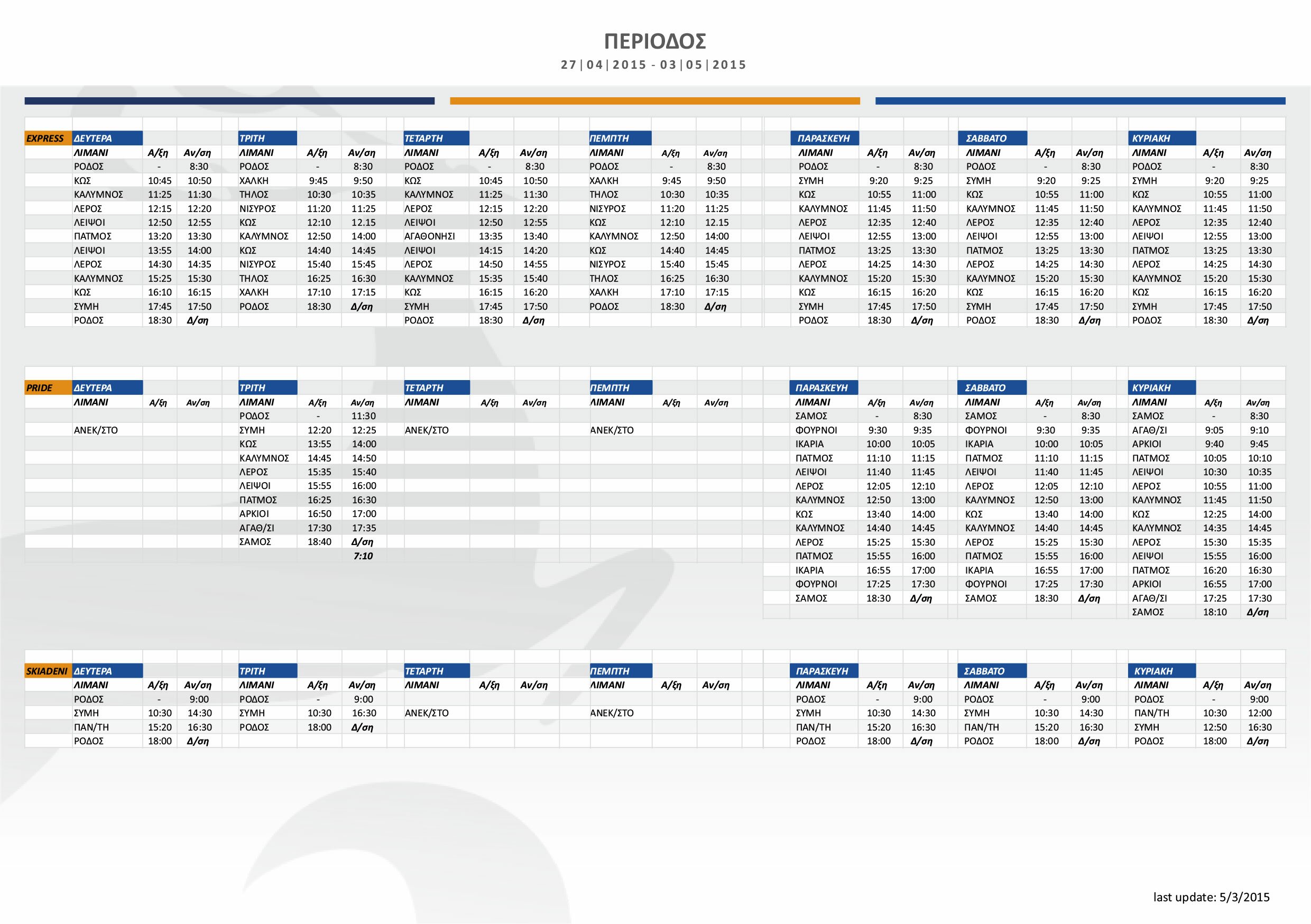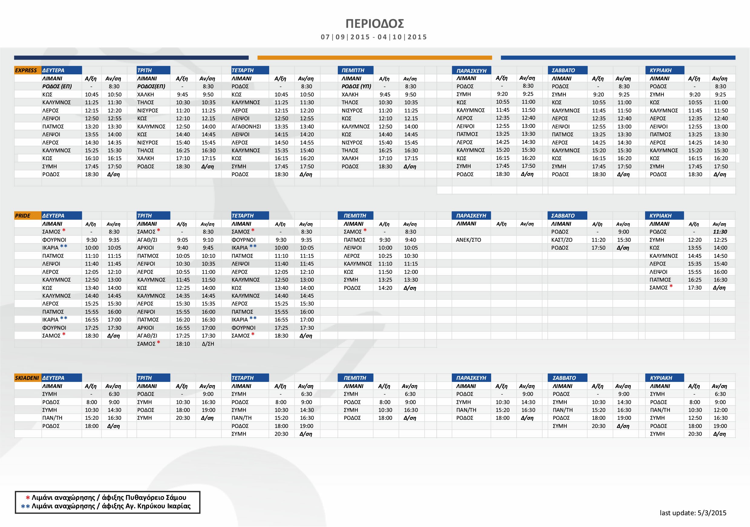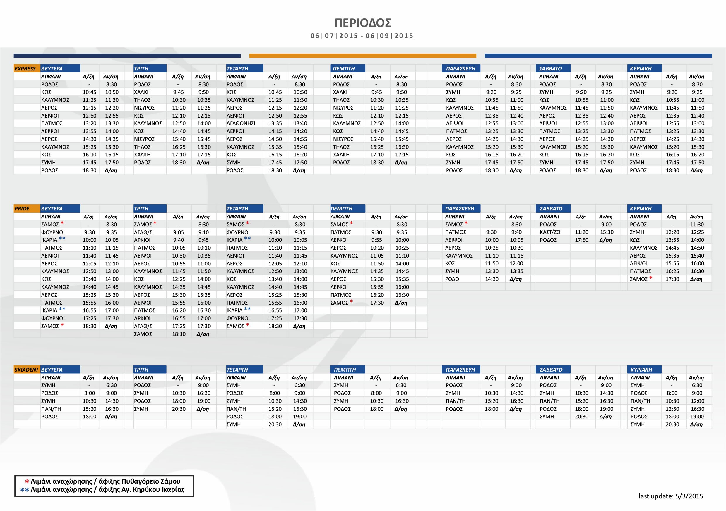 DODEKANISOS SEAWAYS 2015 SCHEDULE